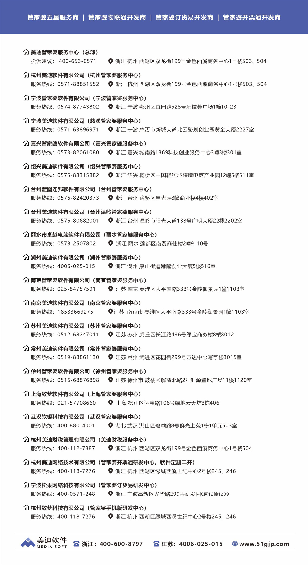 美迪軟件伴隨70000家企業用戶共同成長,25年蟬聯管家婆軟件代理商體系前三強,在20多年的發展中,由單模式的進銷存軟件代理商,成長為多樣化服務的綜合性企業服務公司。提供前、中、后三段服務。前端:提供管理軟件移動端應用研發、軟件二次開發、標準化商城產品及定制;中端:提供管家婆軟件的產品銷售、實施及服務,后端: 提供財稅、企業管理咨詢服務。產品涵蓋進銷存、財務軟件、ERP、CRM、OA、移動物聯、電子商務、零售連鎖等領域。已成功服務??低?、公牛電器、貝因美、蘇泊爾、老板電器、五豐冷食、川味觀、獅峰茶葉、娃哈哈、四維衛浴、雷士照明、淘淘貓、華之毅時尚集團等幾十個知名品牌和上市公司。在團隊的努力下,美迪軟件榮獲首批全國管家婆授權服務中心、5S體驗中心、最佳合作獎、突出貢獻獎最佳績效獎、長期合作伙伴等幾十個獎項。