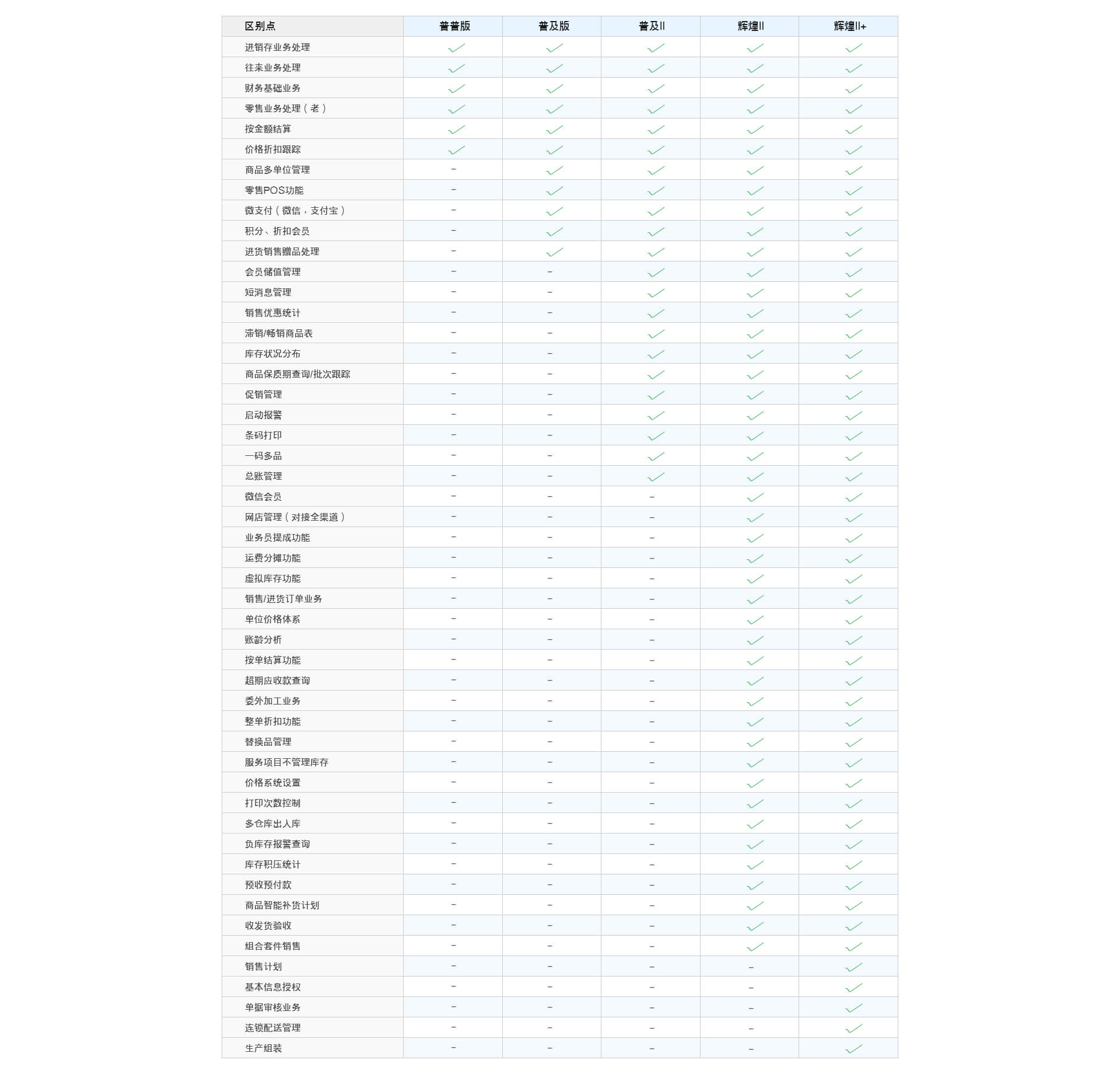 功能對比表